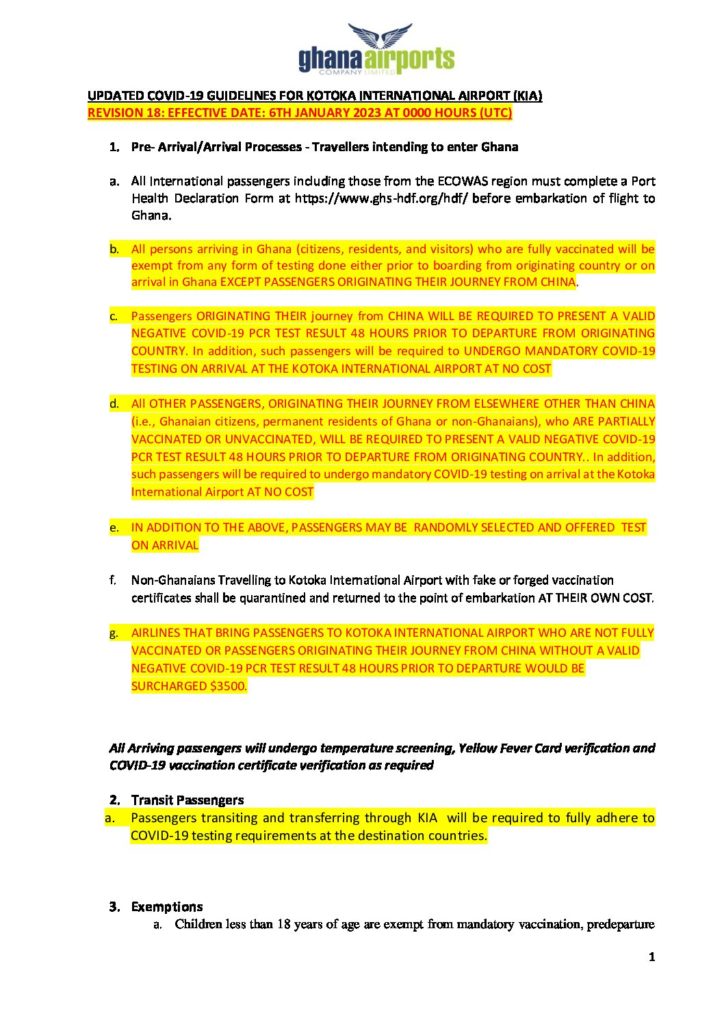 arrival in Ghana EXCEPT PASSENGERS ORIGINATING THEIR JOURNEY FROM CHINA.