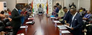 Ken Ofori Atta leading the board members to take the oaths of office and secrecy