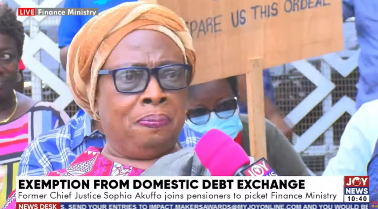 Former Chief Justice, Sophia Akuffo is worried about the fate of pensioners who are crying out against the inclusion of their funds in the ongoing debt restructuring.