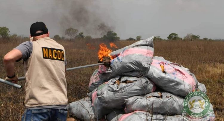 The Narcotics Control Commission (NACOC) has destroyed 50,000 Kilogrammes or 50 tonnes of marijuana at the Bundase Military Camp in the Greater Accra Region, worth Fifty Million Ghana Cedis (50,000,000).