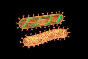 The virus enters humans through fruit bats and spreads between people through the exchange of body fluids.