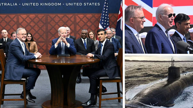 Mr Sunak met with US President Joe Biden and Australian Prime Minister Anthony Albanese in San Diego, California to finalise the defence pact and appeared at a joint press conference.
