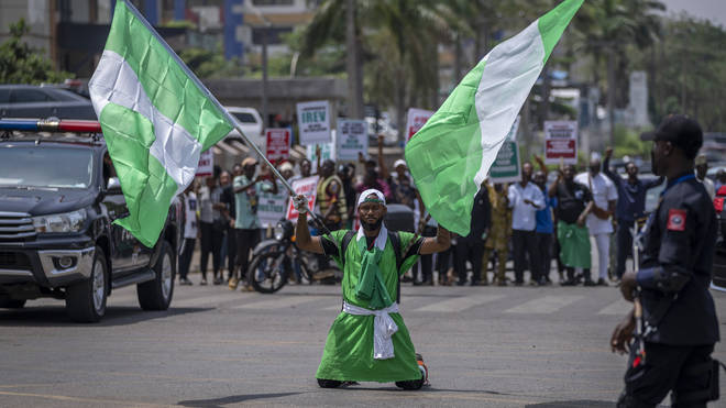 While the press conference was taking place, dozens of protesters took to the streets of Abuja and in the southern Delta state, accusing the election commission of disenfranchising voters.Demonstrators accusing the election commission of irregularities and disenfranchising voters protest in Abuja, Nigeria (Ben Curtis/AP)