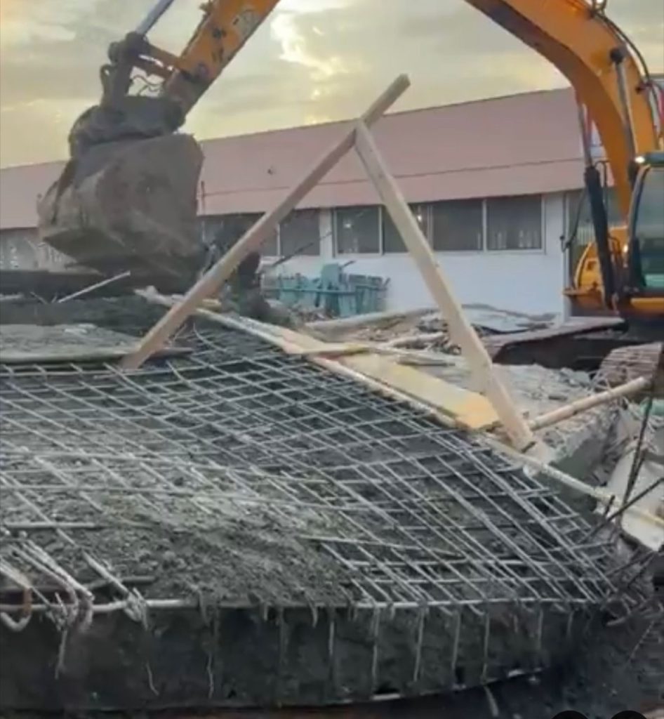 The deceased was trapped in the rubble for several hours and was retrieved dead.