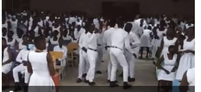 Some of them could be seen in a video that has gone viral, dancing to gospel music and shouting “the God of Mr. Agbomadze has spoken. Fijai headmaster hands are clean.”