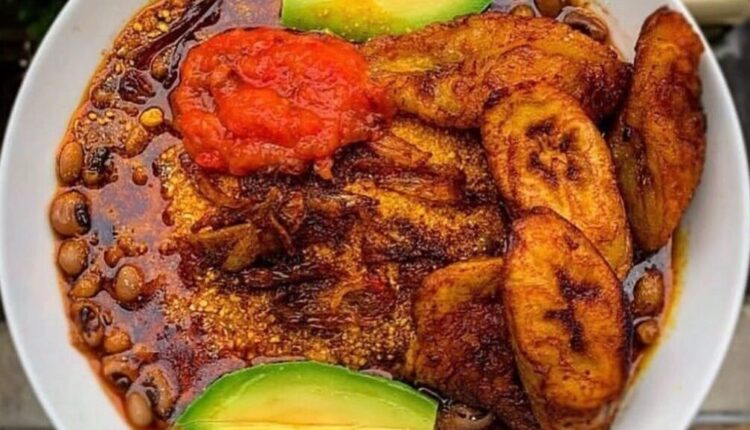 Frying ripe plantains gives them a caramel-like taste that many people enjoy; most times, this plantain is mixed beans cooked with palm kernel oil.
