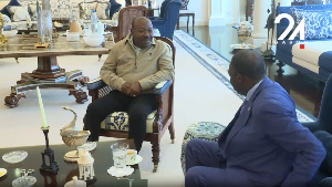 In a broadcast by the state-owned Gabon24 TV, Bongo is sighted with emmissary Abdullah Barry in a chat. He is in a relaxed mood and the exchanges between the two are seen to be cordial.