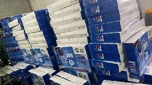 Social media platforms went into a frenzy after a video of several 32-inch smart TVs branded with the image of the current Member of Parliament of Yendi, Farouk Aliu Mahama, emerged on some platforms.
