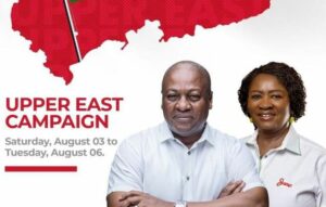 The flagbearer of the opposition National Democratic Congress (NDC), John Dramani Mahama, will this weekend kick off the first phase of his 2024 campaign tours from August 3 to 6, 2024, in the Upper East Region after launching his campaign in Tamale, the Northern Regional capital last Saturday.