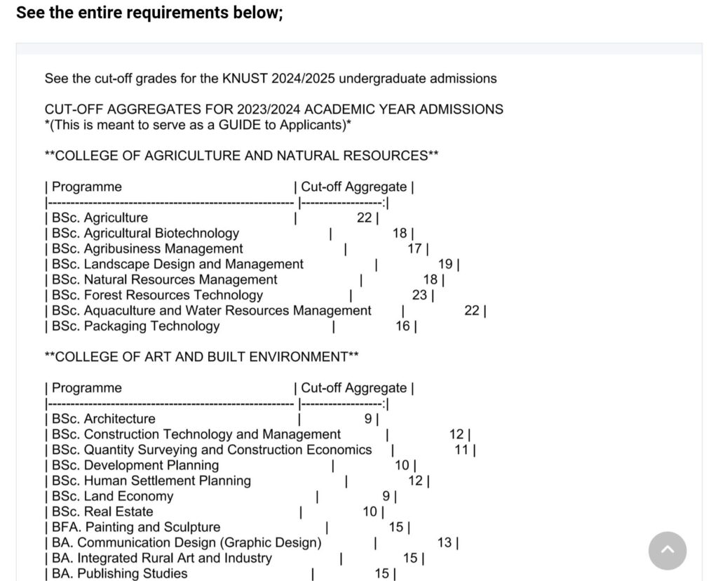 Applicants seeking further information on programme-specific requirements and application procedures are encouraged to visit KNUST’s official admissions portal or contact the Academic Affairs Division.