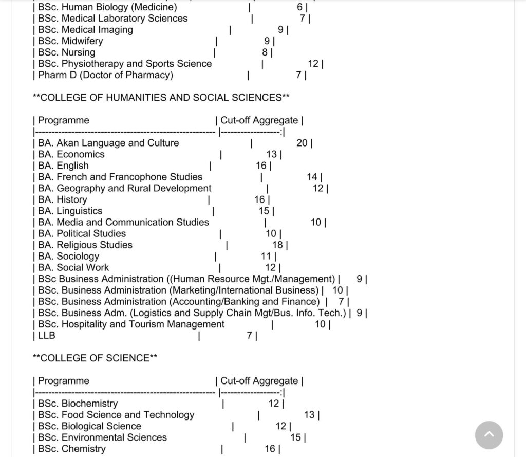 See the cut-off grades for the UHAS 2024/2025 undergraduate admissions