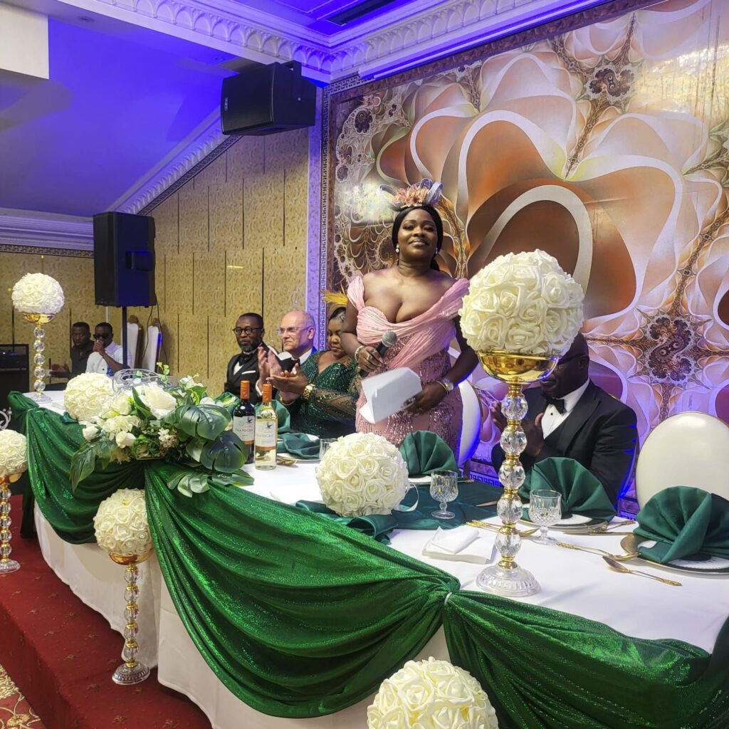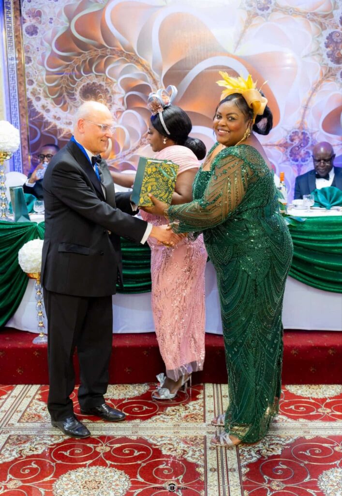 A highlight of the evening was the introduction of the Emerald Ladies’ formidable president, Lady Amanda, whose poise and vision set the tone for the night. She was joined at the high table by an esteemed group of dignitaries, including His Worshipful Civic Mayor Councillor Richard Chatterjee and his wife, Mayoress Angela Chatterjee, Apostle Joseph Kwakye, and revered traditional leaders from Nananom UK & Ireland — notably Nana Kwaku Boahene (Kronkronhene) and Queen Pobat Yenuloom Tintangobie I.