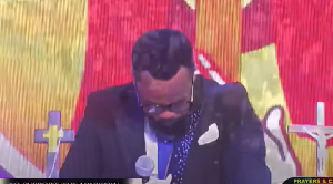 Pastor Asiamah was seen wiping tears from his face multiple times as he led the service.